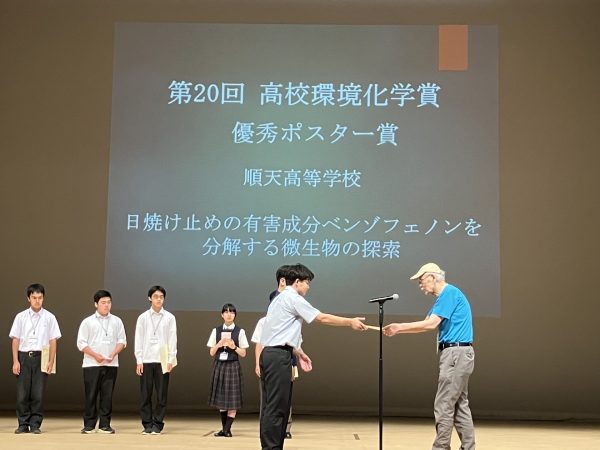 この賞は、日本環境化学会が主催する、高校生の環境保全に関する優れた研究活動を顕彰するもので、部活動や探究活動などで環境問題に取り組む高校生から論文を募集し、審査のうえ表彰を行うものです。