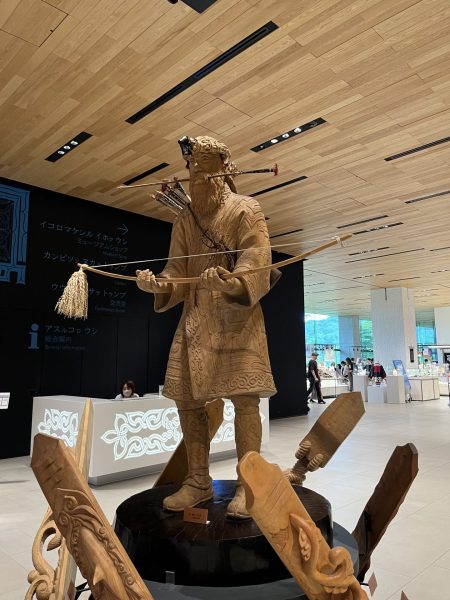 体験交流ホール(アイヌ語で「ウエカリ チセ」)では伝統的な舞踊を鑑賞し、文化や世界観を身近に感じることができました。ウポポイのスタッフたちはそれぞれがアイヌ語の名前を持ち、施設内のいたる所にアイヌ語の説明があり、文化を残そうとする人たちの強い意志が表れていました。