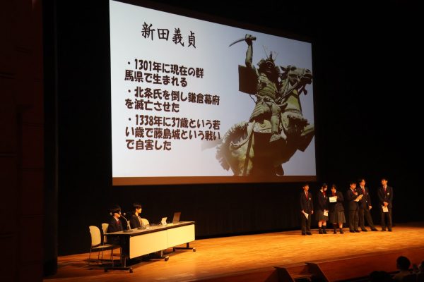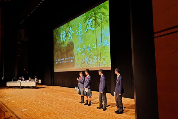 本校では中1で富士山理科探究旅行、中2で鎌倉遠足、中3で沖縄修学旅行と校外学習に出かけます。これらの行事は理科、歴史等の探究学習に結び付いていて、現地での体験と事前事後調査の成果をプレゼンしました。
